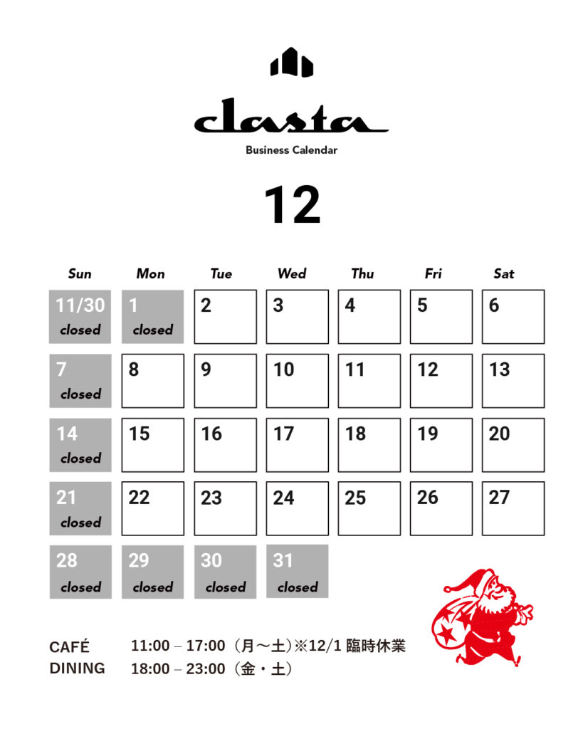 12月の営業カレンダーのお知らせ